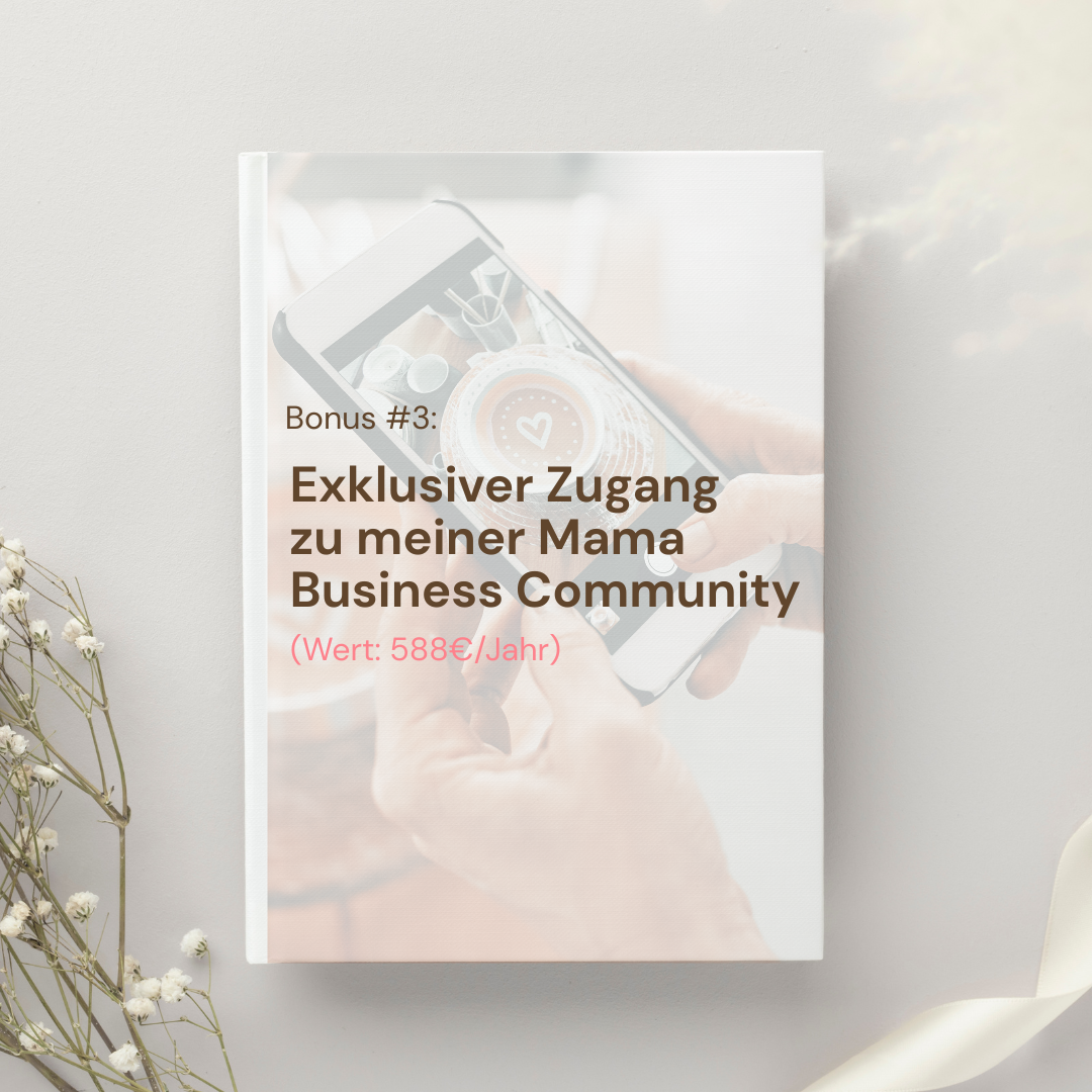 Du bist nicht allein! Ich gebe dir Zugang zu meiner exklusiven Mama Business Community, wo du Unterstützung, Feedback und direkten Austausch mit anderen Müttern findest, die den gleichen Weg gehen. Ich bin auch persönlich für dich da.